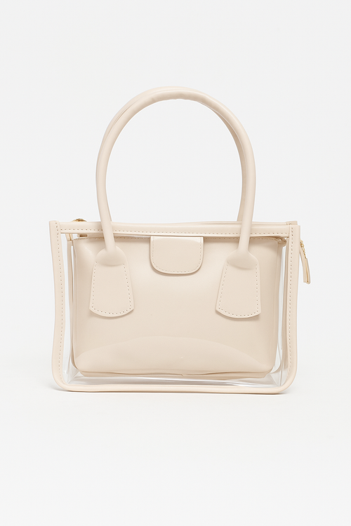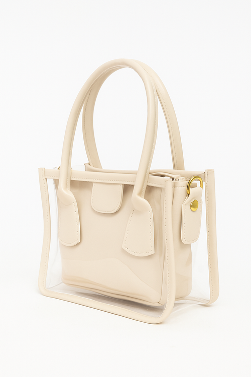 این کیف کراسبادی با بدنه ترکیبی شامل طلق شفاف و چرم مصنوعی در رنگ کرم، گزینهای مناسب برای کسانی است که میخواهند استایلشان مدرن و متفاوت باشد. طراحی شفاف طلقی به همراه کیف داخلی جداشونده، قابلیت استفاده چندگانه را برای شما فراهم میکند.