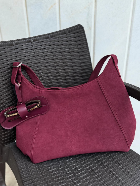 کیف دوشی بزرگ جیر زرشکی — انتخابی منحصربهفرد برای استایل شما
