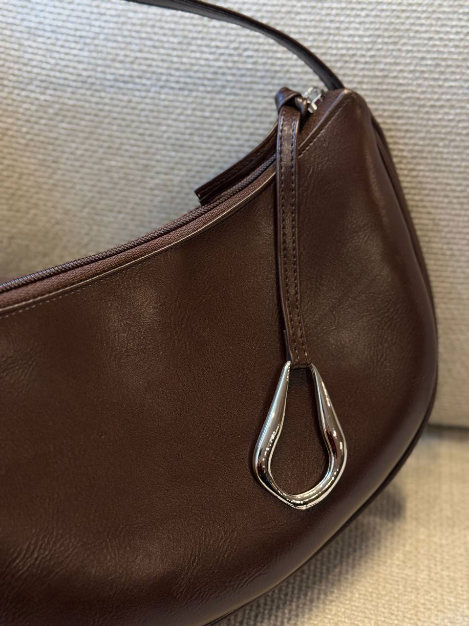 کیف باگتی رِنگ قهوه ای یک کیف دوشی زنانه خوشفرم و کاربردی است که با طراحی جمعوجور و رنگ قهوه ای همیشه شیک، بهراحتی با انواع استایلهای اسپرت و شهری هماهنگ میشود. این مدل از کیفها بهخاطر فرم سبک و کشیدهشان، راحت برای حمل روی شانه یا در دست هستند و فضای کافی برای وسایل ضروری دارند.