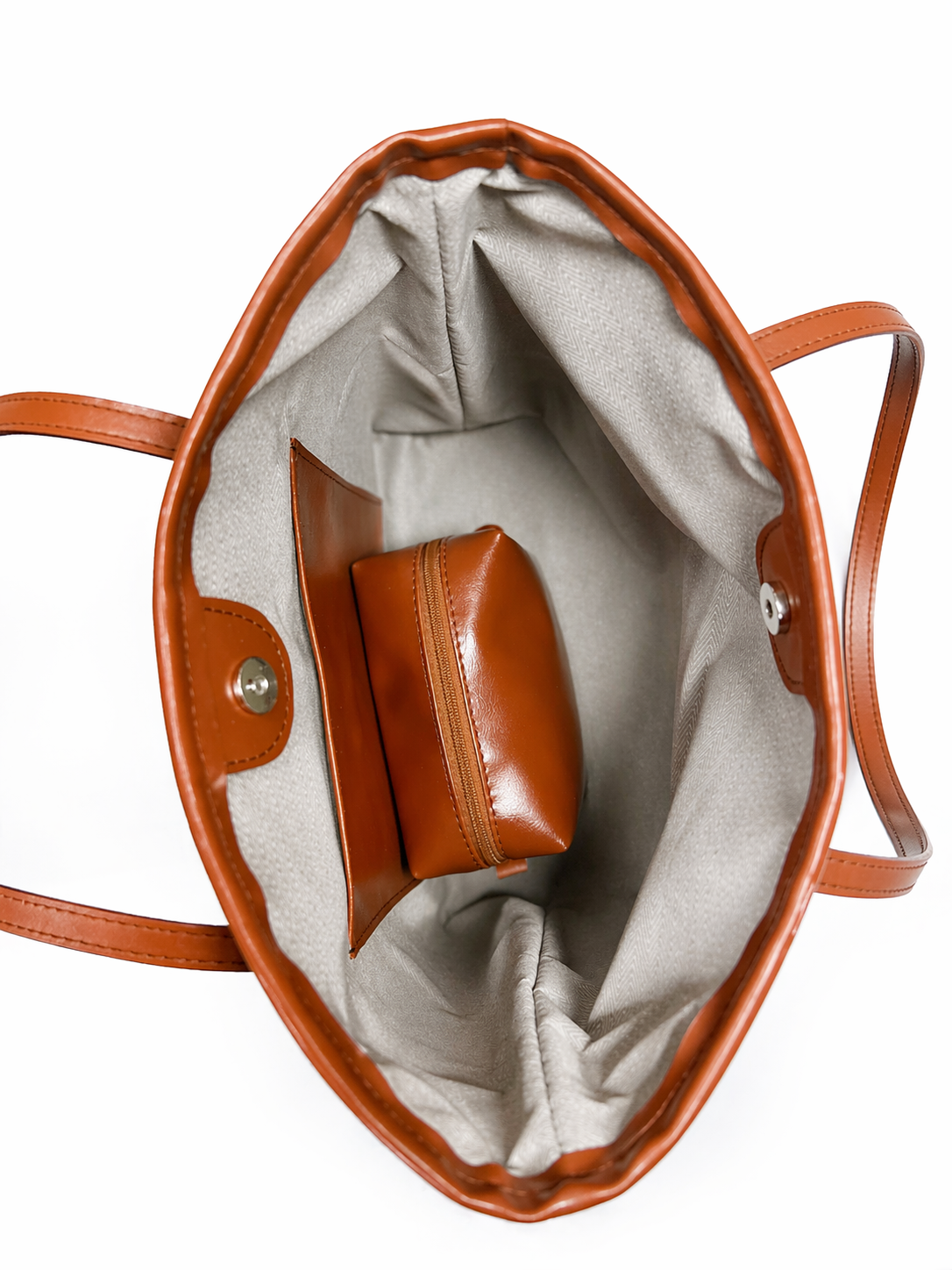 رنگ: چرم عسلی و پارچه کنفی کرم — ظاهری کلاسیک و قابل ست شدن با لباسهای رسمی و روزمره